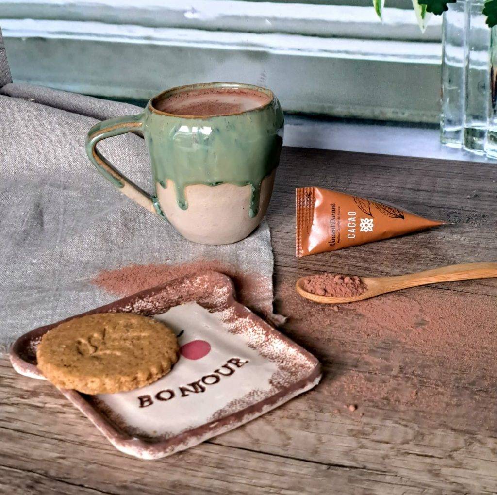 D’un côté, des céramiques artisanales façonnées à la main dans mon atelier, uniques ou en petites séries, pensées pour accompagner vos moments gourmands.